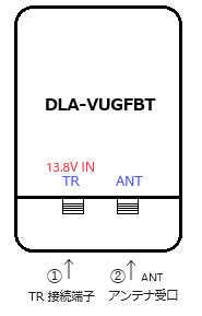 13.8V IN ・・・・・13.8V電源同軸重畳のトランシーバー or DLA-BTSC 接続端子 13.8V電源重畳の同軸で接続します 50Ω N型 AANT ・・・・・アンテナ受口 50Ω N型 |