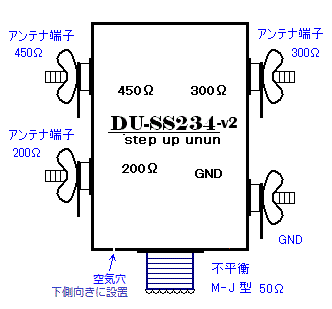 ステップアップインピーダンス変換器 完成品 50Ω : 200Ω/300Ω/ 450Ω UN-UN DU-SS234-Ver.2 1MHz〜30MHz
