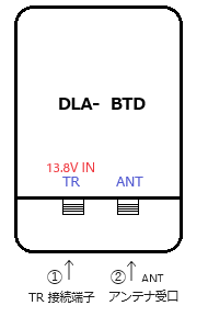 13.8V IN ・・・・・13.8V電源同軸重畳のトランシーバー or DLA-BTSC 接続端子 13.8V電源重畳の同軸で接続します 50Ω N型 AANT ・・・・・アンテナ受口 50Ω N型 |
